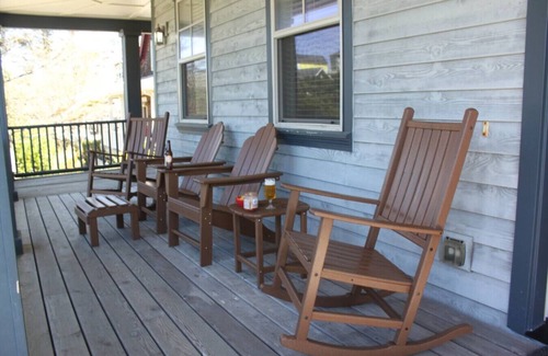 The outdoor space at Beach Haven offers a great blend of relaxation and convenience. Enjoy your morning coffee or evening beverage from the cozy chairs on the front porch while watching the kids play in the park just across the street. At the back of the house, you'll find a small deck with a BBQ, perfect for grilling up a meal while enjoying the fresh air. After a day at the beach, rinse off the sand with the outdoor shower head, making it easy to transition from seaside adventures to home sweet home.
