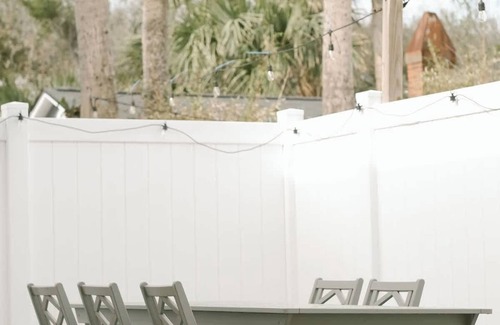 Outside is a large dining table and night lights to enjoy the warm Florida breeze. You'll have beach chairs and towels provided for your stay, and the ocean is just 1 block away.