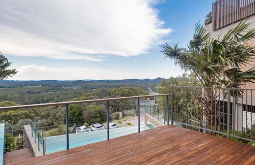 The beach house is set high on the hill overlooking One Mile and Samurai Beaches. The air conditioned lounge, dining room and kitchen are enclosed by full length glass offering you panoramic ocean and bush views. Sit back, relax and unwind; let the tranquillity work its magic or cook up a storm or a BBQ then sit back and enjoy the fruits of your labour whilst taking in the view. If the ocean is not enough then the birds and wildflowers provide their own magic.