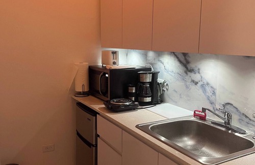 Experience the convenience of our two-story Airbnb featuring two fully equipped apartments, each boasting a kitchen and private bathroom. Enjoy the luxury of a private garage accommodating two cars. The lower level offers a cozy space with a queen bed, while the upper floor provides a spacious retreat with a king bed and a queen sofa bed, accommodating six or more guests. Additionally, unwind on the beach patio for a perfect blend of comfort and relaxation.