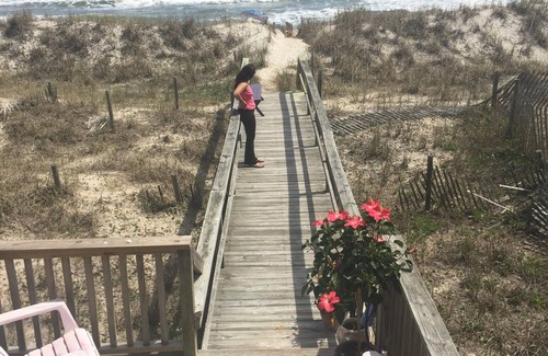 LOCATION LOCATION LOCATION. Just steps to the Ocean Grill Tiki Bar where you can grab a wonderful lunch, a cold beer or cocktail, or just kick back on your own large, covered wrap-around porch and listen to the live music on Thursday evenings in the summer. Or take a stroll to the famed Carolina Beach Boardwalk - just .8 miles away - a 20 minute leisurely stroll along the white sandy beach.