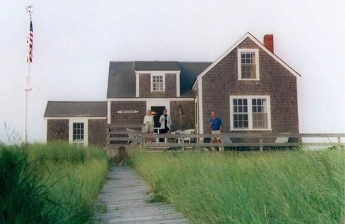 Lockup is a classic beach house, very charming, but not fancy, located on the beach in Wauwinet. Its location and views are spectacular! For that reason, Lockup has been featured in "Yankee" (May/June 2023), the 2003 Nantucket Calendar (March), in Robert Gambee's 'Nantucket Island' (1986) and in 'My Nantucket ABC Book' for children. Lockup sits atop the sand dune next to the ocean beach, and you literally walk off the back deck onto the enormous beach. You see water out of every window, and the house is surrounded by decks on 3 sides allowing you to choose sun or shade, breeze or no breeze.