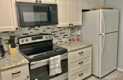 Fully renovated in 2023! This direct oceanfront condo is bright and spacious and only steps away from the beach. Condo is 2 BR / 2 BTH on second floor with parking garage below. Sleeping arrangements include two bedrooms each with its own king-sized bed and an extra trundle bed in one bedroom that can sleep two children.