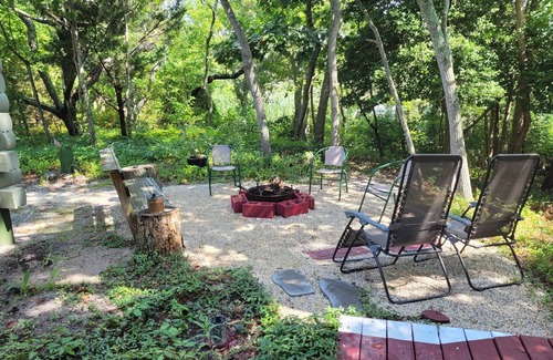 Forest meets the ocean at this charming log cabin one block from the Delaware Bay. Enjoy the very secluded back yard, surrounded by state land, with a view of a small tidal pond. Three bedrooms include two queens and a set of twins, with two bedrooms upstairs and one off the kitchen. Two full baths and outdoor shower. Open plan kitchen and dining area make for great socializing. Fully equipped kitchen. Linens included.