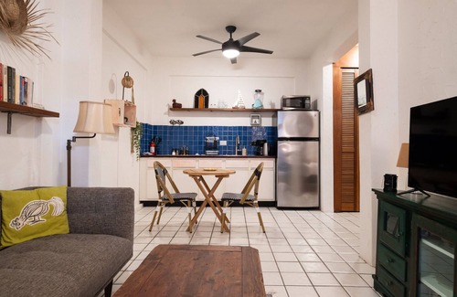 Kick back in this playful 1-bedroom beach apartment before hitting the waves or local restaurants and nightlife, all just steps away!This charming apartment has everything you need for a comfy stay - a good bed with bamboo bedding and AC in the bedroom, high-pressure shower, fully-equipped kitchen, washer-dryer, and a living room that flows into a semi-private patio.Flex check-in/out, just ask!The spaceThis well-loved apartment has a shabby-chic vibe with beachy decor and all the amenities you need when staying home. Cook up a meal, read a book on the sofa, enjoy your morning coffee on the patio and have a deep snooze in the AC-cooled bedroom. When you're ready, the beach is steps away! Calle Mcleary and Loiza, both packed with bars and restaurants, are also seconds away on foot. Kite surfing, a trendy beach club and other attractions abound.This is a downstairs apartment in a two-apartment older building, so please take note of the following:1) Our upstairs neighbors also share this building, and they will need to pass through your patio to access their space. We encourage you to keep your front doors open when you're home to let in natural light (as mentioned in the next point), and you might see them passing by. Please be friendly and considerate of them, especially regarding noise levels. If you value total privacy, this place may not be the best fit for you, but it's perfect for those who enjoy a sense of community.2)Being on the ground floor with traditional windows means our apartment receives a limited amount of natural light. However, once you're inside with the front doors open, it's comfortable and well-lit. It may not be flooded with sunlight and breathtaking views, but it offers a warm and cozy atmosphere. The bedroom doesn't have a lot of natural light unless you open the louvers, but we recommend keeping it dark and cooled with the AC, as shown in the honest photos.We welcome furry friends if they are house trained and charge a $50 pet fee per pet per stay for stays of up to 5 days. However, for longer stays, the pet fee may vary slightly. Please note the patio is not sealed off, it has open access to our driveway and the stairs that lead to the upstairs unit. Your pet must stay in your area.Here's a list of the conveniences you can enjoy:- Super high-quality filtered water, no need to buy yucky plastic water bottles!- In-unit washer-dryer- Coffeemaker and tea kettle (coffee and tea provided), blender, microwave, full-size range/oven and fridge!- Breakfast provided! Pastries, cereal and/or fruit.- AC in bedroom- Smart TV with Netflix and other apps- Blazing fast wifi- Beach towels and chairsGuest accessThis surf pad is in a prime location! Walk to everything Ocean Park has to offer! Downtown Condado and Santurce, both full of restaurants, nightlife, shopping, museums and more, are a 20 min walk or quick scooter or Uber away. Old San Juan is 10 min by car. You don't need a car in this 'hood but if you choose to rent one there is street parking (don't leave visible valuables in your car).Other things to noteIn case of an electrical outage, there is a generator that can comfortably power lights, fans, outlets, and the fridge (No AC or other big appliances). The generator is shared with two other units.The property also has a cistern for any water outages that may occur, although they are not frequent in this area.We're excited to host you and ensure you have an amazing time embracing everything that makes Puerto Rico special! Please keep in mind that Puerto Rico is an island that sometimes experiences water and electricity outages. The vibrant atmosphere of Puerto Rico means street noise is part of the experience. If you're a light sleeper, consider bringing earplugs. Additionally, while we do our best to keep critters away, the tropical weather here means they can be a bit persistent. There are seasonal bugs that are attracted to light, so we advise turning off the lights to encourage them to move away. We're really looking forward to hosting you and ensuring you have an amazing time, embracing everything that makes Puerto Rico special!We're really looking forward to hosting you and ensuring you have an amazing time, embracing everything that makes Puerto Rico special! Whether you're seeking adventure or relaxation, our apartment provides the perfect home base for your trip. Book your stay with us today and experience the magic of Puerto Rico firsthand!