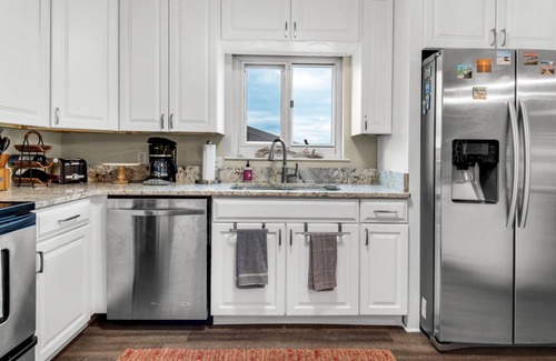 This unit has 2 bedrooms, 2 baths, a full kitchen, and a great living area! The master has a king bed and a private bath. The second bedroom has a queen bed and a set of bunks, and there's a bathroom right outside in the hall. Coin laundry facilities are located directly across the hall from 415 for your convenience.