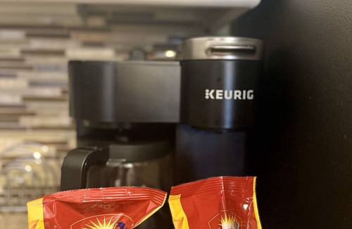 The kitchen is spacious and is fully stocked with a dual Keurig coffee maker, blender, crockpot, pots, pans and skillets, wine glasses, etc. There is plenty of cabinet space and a small pantry. There is also seating for 6 at the new kitchen table.