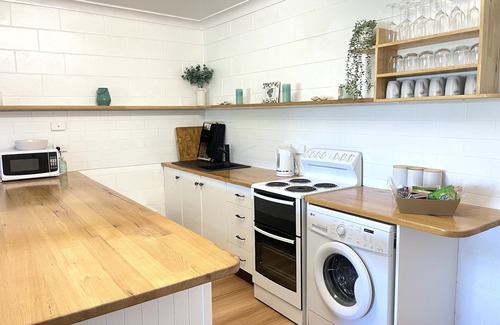 We have a well stocked kitchen, full oven and stovetop for all your cooking needs. Unit has block-out bedroom curtains and blinds throughout for a good night's sleep and air-con to keep you cool and warm depending on the season.