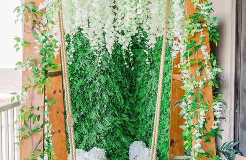 The greenery wall is expandable and may be used for shade, privacy or as a photo backdrop. Please put it back in the corner at the end of the day.