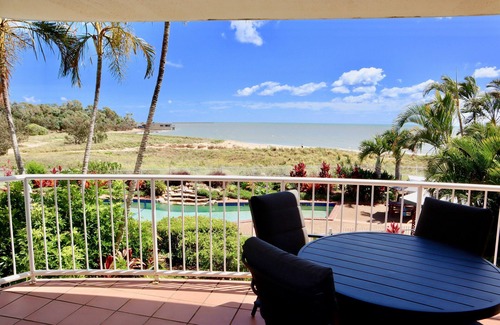 Beachfront and pool views from the balcony 5 min walk to the beach. | Apartment in Urangan