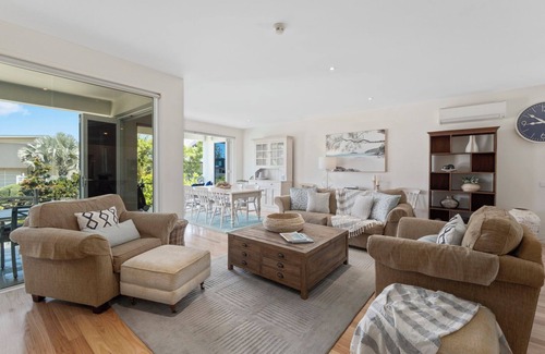 Beachfront by the CC lends itself to romantic couples getaways. If food and wine are your passions, you’re looking at the perfect place to enjoy cooking in a spacious well-equipped kitchen, then snuggle up in the comfy lounge adjacent to the lower level concertina doors on a plush vintage leather lounge. Fancy a late-night dip in the heated plunge pool? No problem, it’s completely private.