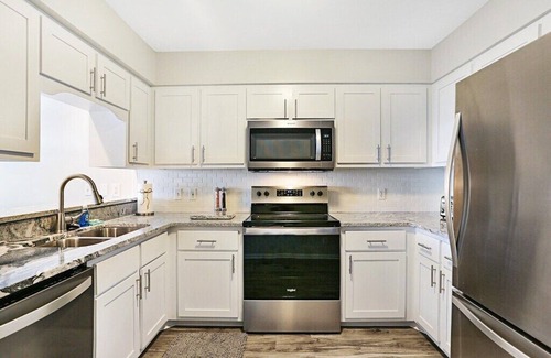 One step inside and you will be delighted with the beautiful beach decor, fully equipped modern kitchen with granite countertops. The kitchen looks in on a large living and dining area. Just beyond the sliding glass doors, there’s a private deck with gas grill and an outdoor dining table so you can enjoy your coffee in the morning or cocktails at sunset. There’s also a full bathroom downstairs.