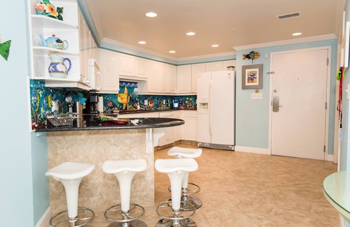 2 Bedrooms, 2.5 Baths, fifteenth floor; King in main BR, Queen and Twin in guest BR, Queen pullout in LR; Sleeps 7. Golf cart; private balcony; free parking; free wifi; full-size, stocked kitchen; washer/dryer; renovated; free Netflix account.