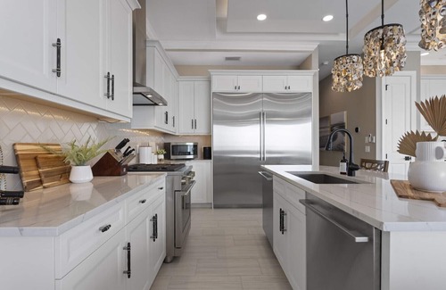 The home is equipped with state-of-the-art wifi and smart home features, including a security system, surround sound Sonos speakers throughout, smart-home air conditioning controls, and smart TVs. Each suite evokes the luxury of a 5-star hotel, offering hotel-quality linens and L'Occitane bathroom toiletries. Take a dip in our brand-new heated pool and spa, professionally maintained for your comfort.