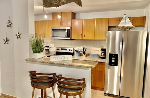 Beautiful Beachfront Resort Villa features 3 bedrooms and 2 bathrooms with two free assigned parking spaces. Each bedroom is equipped with the best quality of Mattresses, bed sheets, comforter, pillows and air conditioner. My guests will enjoy 600 Mbps of WiFi. The living-room area has two 68" ceiling fans and a 70" LED Smart TV with many apps such as Netflix, HBO Max, Amazon Prime and cable TV with a BOSE Sound Bar that you can also pair with your phone to listen your favorite music. The kitchen features a stainless still fridge with ice-maker, coffee maker, toaster, dishes, microwave and stove; large counter with 2 bar stools alongside a 6 chairs dining area. When you find your way back to the living-room you will discover a family couch with a side accent chair. You will also enjoy a front balcony with two chairs and a rear terrace with 4 Adirondack chairs and a hammock were you can fully relax with the ocean breeze listening the waves . From this terrace you can enjoy to the right a partial view of The El Yunque Rain Forest and to the left our beautiful beach.