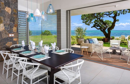 Located in a secure complex of five units, B&P Lafayette is on the ground floor, feet in the water, at Poste Lafayette, on the east coast of Mauritius. Just a 25-minute drive from Grand-Baie and 35 minutes from Port-Louis, the capital, this apartment is ideal for a peaceful and luxurious getaway. The spacious 250 m² apartment offers a modern, open living space with large bay windows, providing superbe views of the lagoon and easy access to a private 11-meter wide terrace, perfect for lounging or enjoying a cocktail and barbecue.
