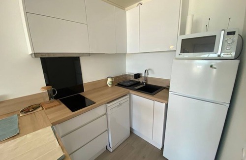 Beachfront studio, large fridge, dishwasher, washing machine, private parking is located in Marseillan Plage. Beachfront studio, large fridge, dishwasher, washing machine, private parking provides accommodation, featuring Child Friendly, Kitchen, Laundry, among other amenities. This Apartment features Child Friendly, Kitchen, Laundry, to make your stay a comfortable one.