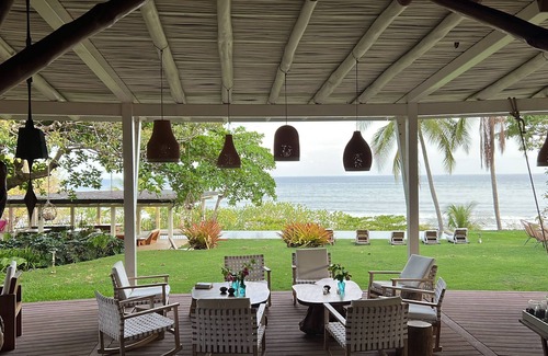 Harmonizing with the lush surroundings, Panzalsol is a spacious home surrounded by lush gardens where you can hear the waves crashing, watch the scarlet macaws fly by, and enjoy the howler monkeys as they eat the property's mangos. The architecture of this very private house consists of a stunning palapa, the biggest in the area, handmade in the traditional indigenous method. All the rooms are decorated in local art and custom furniture designed and made in town by local artisans. Panzalsol is a place to relax in the hammocks, surf on the beach, hike in the mountains, stargaze, horseback ride, or simply enjoy long meals and conversations in the four different dining areas on