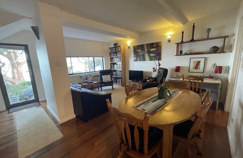 Ocean views from every room with immediate easy access to the beach. This self contained beachfront apartment is a cosy retreat, with fully equiped kitchen, living room with library, work desk and Tasmanian art. Relax in the mosaic spa. A warm, quiet base for local coastal exploration: snorkelling, kayaking and walking the coastal trail.