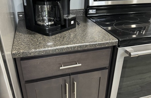 Bearly Awake cabin boasts 2 bedrooms, 2 full baths, combined open kitchen, dining and living space, laundry with washer and dryer, and picturesque views from every space in the cabin. Bedroom 1 offers a full over full bunk bed with a pull-out twin trundle, TV, closet, and attached full bathroom, also accessible through the laundry room situated off of the main living space. Bedroom 2 has a queen bed, private full bath, TV, and closet. Kitchen includes refrigerator, dishwasher, microwave, toaster, coffee pot, glassware, dining, cooking and silverware sets, and table that seats 6. Living space has a sofa that pulls out into a queen bed, love seat, chair, and TV. All have sliding glass doors with amazing views of the great outdoors and the Clarion River that lead to a covered patio with chairs. Beyond the patio is a custom-made fire ring with plenty of seating and a covered pavilion with electric, both situated on the banks of the Clarion River. Cable TV, Wi-Fi, heat and air conditioning. Cut firewood is located on the property. It is available for purchase on a consumption basis and honor system during rental.