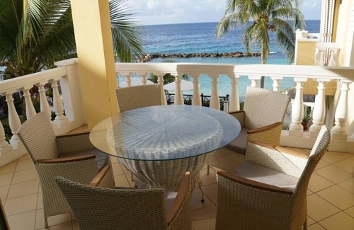 The balcony Beau Rivage 24 has a fantastic view of the Caribbean Sea, and there is a nice dining area so you can enjoy the beautiful view during dinner. Both bedrooms have a bathroom "en-suite". The bedrooms are both spacious and in the master bedroom there is a king size bed while the 2nd bedroom there are 2 single beds. The living room and the kitchen are also spacious and the balcony is an extension of the inside due to its large sliding door. In this way, inside and outside are made into 1 whole! The complex has its own, secured parking lot and there is 24/7 security at the gate