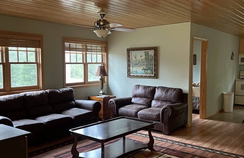 Beautiful private carriage house with a dock on the Chippewa Flowage just about 100 yards from the residence.This 2 bedroom/1 bath cabin is on the Dun Rovin resort property. Private area with a fire pit, plenty of parking for your vehicle and boat trailer. Rental pontoon and fishing boats available at additional cost.