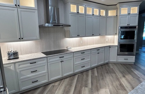 The spacious kitchen (newly renovated in 2024) will help to entertain a crowd. Breakfast bar, children's portable picnic table, high chair, booster seat and additional dining area help to seat an overflow crowd. Quartz counter tops, glass top stove, 2 Refrigerators, ice maker and lots of cupboards and storage help to make cooking on vacation an activity you actually can enjoy! There is a laundry room complete with front loading washer and dryer (2nd refrigerator is located here).