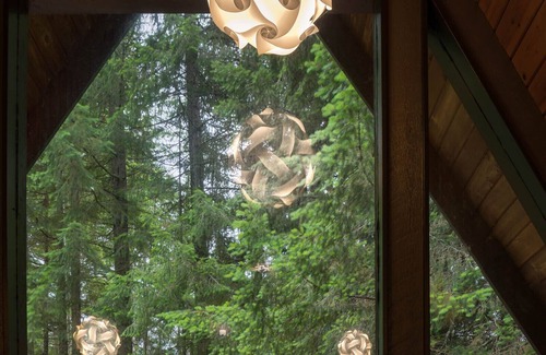 A lovely A-frame home with Modern updates on 4 acres of forest close to a river and a 15 minute drive to the entrance of Rainier National Park.