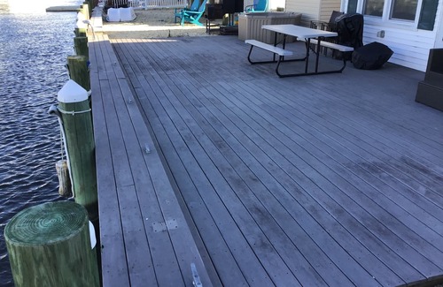 An adorable and comfy two bedroom ranch on a canal with access to open bay. You can come by boat and dock it right to the cutest outdoor living space, Jacuzzi is included. Bring your own water toys kayak etc.Walk inside to an open inviting space full of sunshine. This cozy newly renovated happy little getaway place easily sleeps 6. WiFi ready. Take a bike ride through this family friendly neighborhood of Bayville, to the little semi private Butler’s beach and John C Bartlett park at Berkeley Island. Seaside Heights is a 20 minute car ride away. This house is for families of six only and absolutely no parties what so ever . This is a family neighborhood.