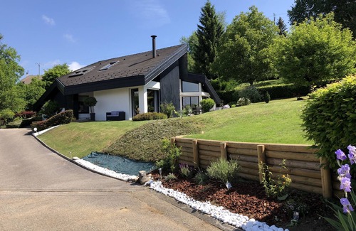 Large contemporary house, large triple living room opening onto a large terrace equipped for lunch and rest, bedroom on the ground floor, we have just changed the box spring and mattress for a more comfortable bed with private shower room, modern kitchen, fully equipped, toilet, utility room with washing machine and dryer. Upstairs two large bedrooms and bathroom with double bath, toilet, Air conditioning upstairs in the large bedroom. Large house in excellent condition, very bright, many picture windows. Very beautiful garden with beautiful equipped terrace, barbecue, deckchairs ... in a pretty and calm mountain village. Annecy and the resorts of Aravis are nearby.