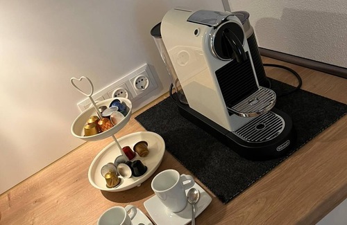 Then the "Heimatliebe" is just right, the ground-floor newly renovated 2.5 room "Heimatliebe" is located in a detached villa and has a separate entrance in a beautiful location on the outskirts of Balingen, which invites you to relax. The apartment can accommodate 2 people and has 64 m² of living space and a private courtyard garden with comfortable seating, so you can really relax. The cozy living and sleeping area offers a large box spring bed with a comfortable sofa corner and a flat screen TV, WiFi and a bookshelf. The entrance area offers a lot of light with a nice dining area and an adjoining fitted kitchen. The bathroom is equipped with a walk-in shower, vanity and toilet. The apartment is non-smoking.