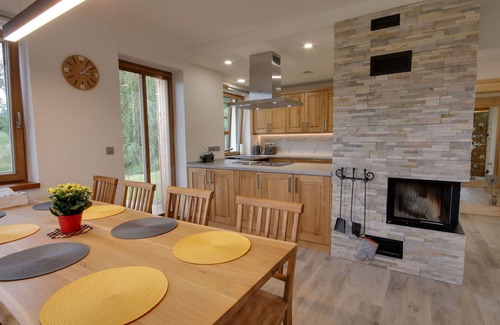 The Cosy house "Chalupa U Krále" is a detached, two-storey vacation rental situated in a quiet and sunny position atop a hill in Kořenov / Příchovice, just 2 km from the skiing area. It offers a beautiful shared garden to relax, a natural pond, a terrace with garden furniture, a barbecue area, a fireplace, a children's playground, and parking facilities on-site. Additionally, it provides amenities such as a yard, internet WiFi, parking, and an installment plan option.