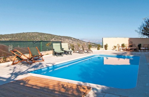 Spend your vacation in this beautiful vacation home with swimming pool in Nerezisca, in rural surroundings on the island of Brac. Relax in this wonderful ambience. On the first floor are a living area with a fireplace and a table for 15 people and a bedroom. In front of this unit is a terrace with a small stone table. To the side of it is the staircase to the next floor. Below the terrace is the large heated swimming pool, stairs also lead to it from the other side of the house. Enjoy the beautiful view from the covered terrace on the 1st floor. Visit the highest point of the island, Vidova Gora.