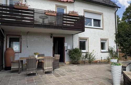 Beautiful house with a large attic apartment in a central location with a large garden, terrace, balcony with beautiful garden furniture. This apartment has a fully equipped kitchen (e.g. coffee machine, microwave, oven, kettle, and toaster) with Miele washer-dryer and extendable table. There is also a large living-bedroom with TV and Wi-Fi internet with a beautiful panoramic view. The new, very comfortable beds offer very comfortable space for 5-7 people. There is 1 king size bed, 2 queen size beds and a single bed in 4 different rooms. All rooms have lamps with USB charging options for cell phones or iPads. All linens are provided. The bathroom has a bathtub and shower and is equipped with towels. The hallway and the entire apartment are decorated with beautiful art and items from the region. There is also space in the hallway to lounge on one of the beautiful sofas. On the 2nd floor there is a large balcony, which can also be used. In addition, the large garden is available to the neighbor for relaxation. All shops for daily needs, restaurants and village festivals are within walking distance. There are parking spaces directly in front of the house. Larger cities with supermarkets, restaurants and all services and cultural offerings (e.g. Bayreuth Festival) can be reached by car in 10 to 30 minutes. There is information material about the region in the living room.