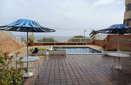 Beautiful apartment with swimming pool and ocean view. one room, for three people, equipped with kitchen, refrigerator, parking 10 minutes from the international airport of Maiquetia. floor 8 open balcony, totally private and personal relax. multiple stores, swimming pool, special for reading, writing, sleeping.
