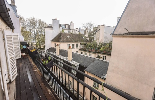 Located on the medieval rue Maître Albert, in the historical Saint-Michel district, this bright, 45 sqm apartment with its 15 sqm terrace has everything to accommodate your stay in Paris.
