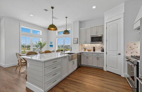 Inside, the coastal elegance welcomes you. The gourmet kitchen is outfitted with sleek, modern appliances to prepare you with everything from morning coffee to sunset feasts. Gather in the light-filled living room for a movie night with cable TV and Netflix, or simply relax in the cool comfort of central AC.