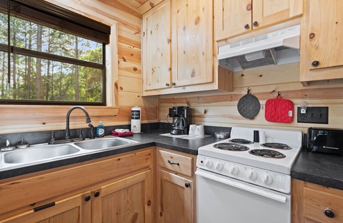 The Cabins at Holly Creek are nestled on 20 quiet acres on the outskirts of Broken Bow OK. Lonestar is a 1 bedroom cabin with loft that sleeps 6 comfortably. The cabin is equipped with all you need to make your stay complete. A fire pit and grill are located just outside the cabin so you can enjoy burgers and smores! Relax and read a book or sit on the front porch and enjoy nature when you aren't out exploring!