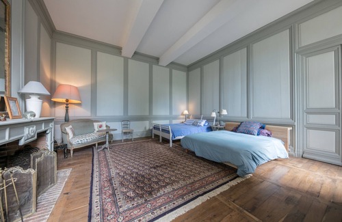 With 12 bedrooms decorated in a warm, rural and antique style, two living rooms equipped with TV and WIFI, dining rooms, French pool room with board games, historical library, a large studio room of 160sqm, a 6-acre park featuring ancient oaks and a splendid bathing lake located a few minutes away, the Château is the ideal setting to welcome large groups and host retreats in a tranquil and serene environment.