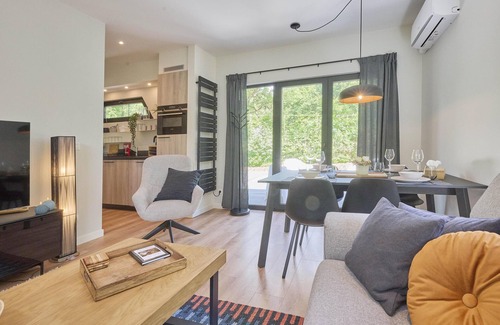 In a quiet wooded area in Zutendaal, a charming chalet for four is surrounded by tall trees and the gentle whistle of birds. The atmospheric décor exudes warmth and coziness. Large windows offer beautiful views of nature, while comfortable furniture invites you to spend relaxing evenings. Outside, a cozy terrace invites you to enjoy the fresh air and the serene sound of nature, perfect for a relaxing stay in nature
