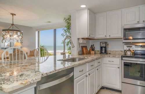 This unit is located on the third floor of the Amelia Surf and Racquet Club. It is situated on the south end of the property, which offers sweeping views both up and down the ocean front stretch of Amelia Island. Our end-unit balcony provides unobstructed views to the North, oceanfront, and a vast view to the South. Your view is as far as the eye can see up and down the shores of this lovely island. The recently updated kitchen and dining area of this unit offers a breathtaking seascape from the expansive picture windows overlooking the beach and boardwalk.