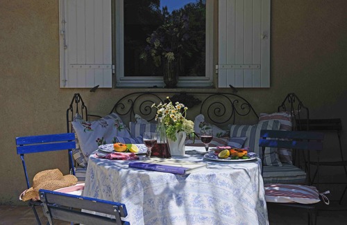 This charming, lovingly decorated and luxurious country house is surrounded by a vast estate (10,000 m2) with a large grassy field, a variety of shady terraces, a wonderful panorama of the green hills and purple lavender fields, a spacious swimming pool (12 x 6 m) which is enclosed partly by a wall and partly by thick vegetation, and more. There is a poolhouse next to the swimming pool, with a shower, kitchen and toilet. You have comfortable garden furniture at your disposal, as well as an open fireplace where you can grill.