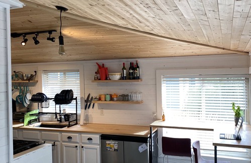Beautiful one bedroom cottage that will accommodate six people via one queen bed, one full futon, and one full pull out couch. There is plenty of room for an air mattress if you wanted to bring your own. Walking distance(five minutes or less) from three lakefront family restaurants/bars. Full playground is directly across the street, perfect for letting the kids play as you can keep and eye on them from the convenience of the cottage. Two smart tv's, one on the main floor and one in the bedroom upstairs. Full kitchen with refrigerator, oven, stove, dishes, airfyer, toaster oven, and coffee maker. Two A/C units keep the cottage cool and comfortable.