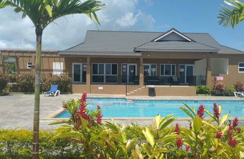 Cozy house nestled in the hills of trelawny, overlooking the ocean. There is 24hour security, access to gym,pool, kids play area and jogging trail. Backyard garden with fresh vegetables and fruits. House has air-conditioning with all the amenities.