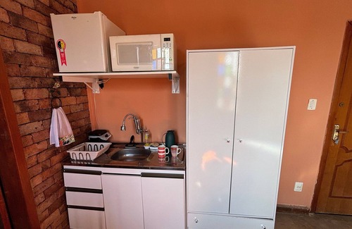 We are in a shopping village with wonderful restaurants and cafes 🛋️ A comfortable studio, ideal for a couple or single person. 📺 TV and high-speed Wi-Fi 🍳 Compact and functional, airfryer, microwave and minibar 🚿 Well equipped, with hot water shower, large mirror. 🏟️ Located next to Mineirão Stadium, in Belo Horizonte.