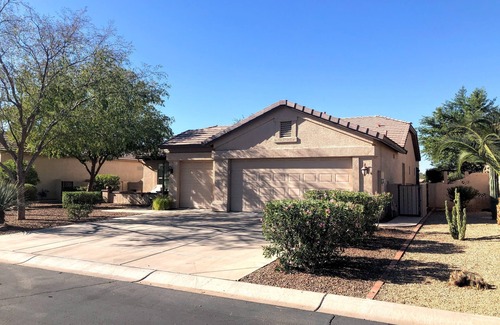 2 bedroom, Split floor plan. Master bedroom with walk in shower and King size bed, 2nd bedroom with Queen Memory Foam adjustable base bed. Den is set up with computer, couch, chair and ottoman perfect for reading. Kitchen overlooking the Lone tree Golf Course. Extended covered patio with roll down shade screens for enjoying the Arizona desert weather.