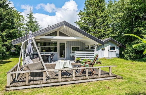 Enjoy your stay in this wonderful holiday home near Herning and discover the many leisure activities the area has to offer. This cosy holiday home is the ideal place to get away from it all. Your charming holiday home impresses with its bright and friendly atmosphere. The living area is modern and comfortably furnished and invites you to relax. Make yourself comfortable in front of the fireplace and enjoy the wonderful view of the garden through the large windows. Take your breakfast and other meals of the day in the cosy dining area or enjoy them on the terrace outside.