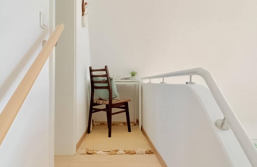 In the Fulda valley south of Kassen, this inviting vacation home welcomes you in the municipality of Morschen. Inside, lovingly and personally furnished rooms await you, making a tasteful impression. The living area is open to the gable, which leads to a distinctly light feeling of space. Enjoy delicious meals with your loved ones at the dining table and spend cozy evenings in one of the sofa corners.