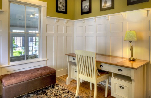 The home is comfortably and beautifully furnished providing plenty of space for you to relax in. The home has lots of windows offering plenty of light and breeze. There are 2 mini air conditioning splits, central air in the top floor and ceiling fans throughout. The office has a separate unit for when you close the door. In addition there is a lovely formal garden offering plenty of shade and a front porch perfect for lounging.