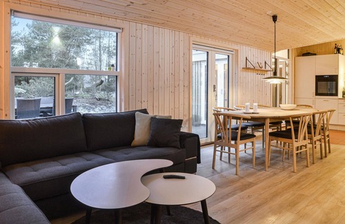 Beautiful activity holiday home renovated in 2020 and situated on a large, partly enclosed and secluded nature plot in the middle of Mosevrå. The cottage is well equipped with a large activity room with table tennis and darts, not to mention direct access to the house's sauna. In the bright bathroom you can relax in the wellness area. The brightly furnished kitchen-living room with good dining area has a nice cozy sitting area with TV. From the kitchen you have a wonderful view of the surroundings through the large panoramic windows.